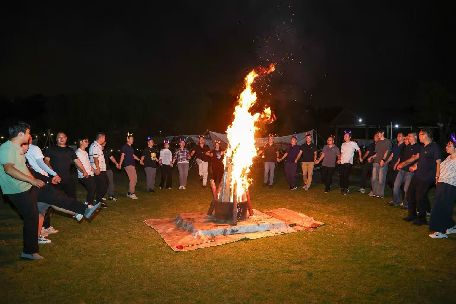 在这个充满欢声笑语的夜晚,大家一起在篝火旁起舞,手牵手,肩并肩,团队的凝聚力在温暖的火焰中悄然升华。