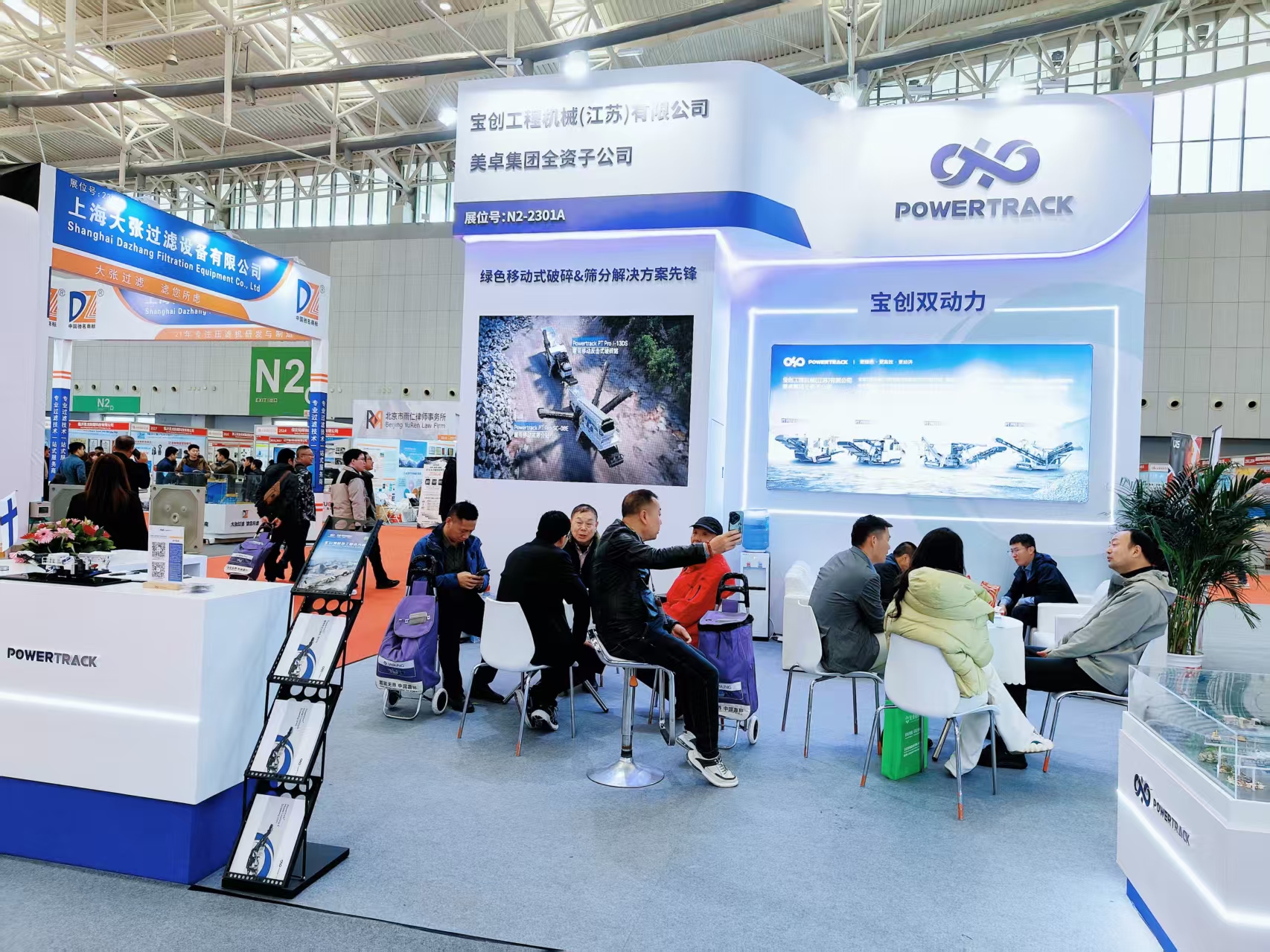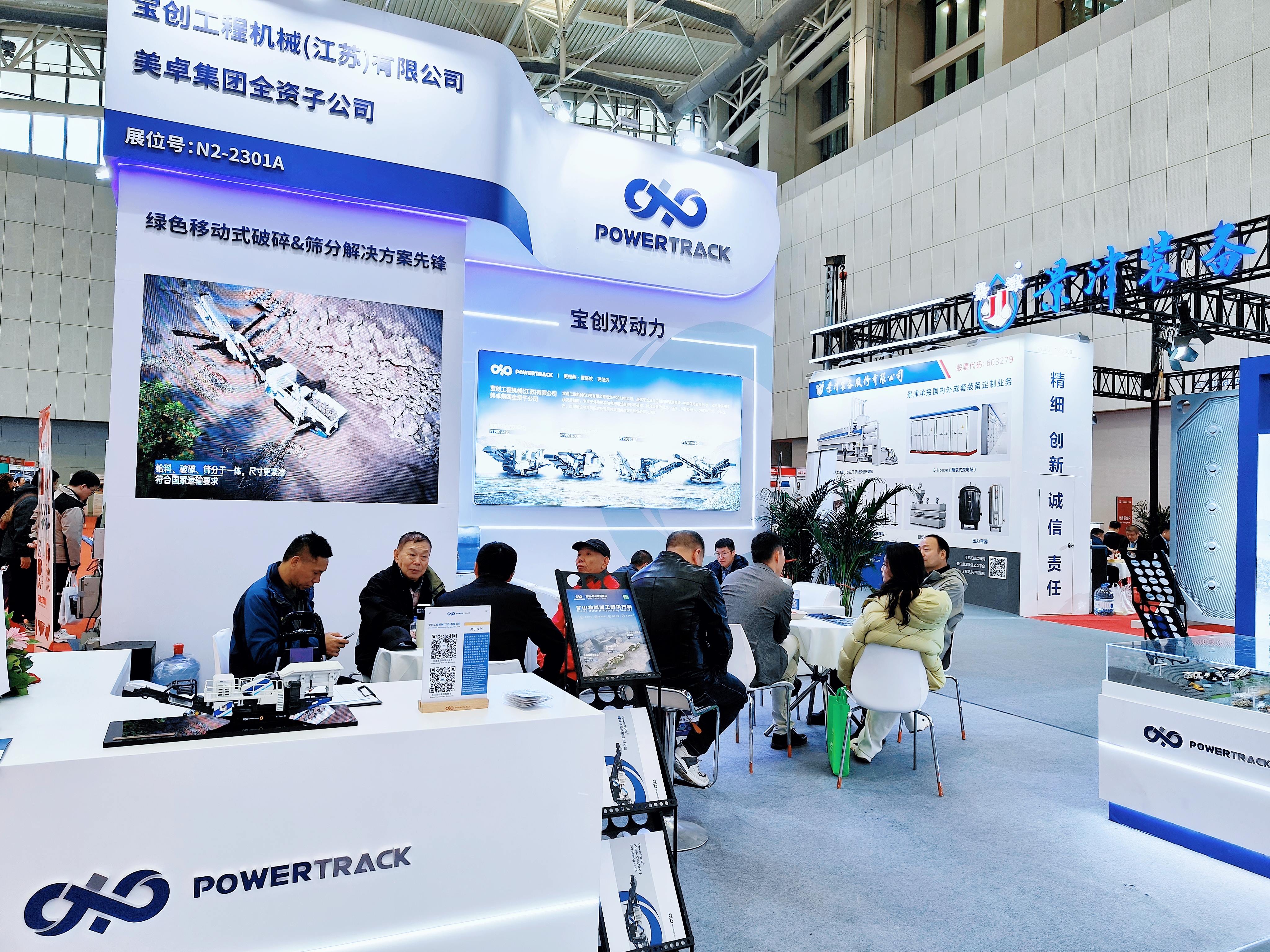 宝创作为绿色移动式破碎筛分方案先锋受邀参展。展会现场,宝创展示了「覆盖粗碎、中碎、筛分的全流程双动力」产品矩阵和「矿山物料绿色加工」解决方案,产品凭借"外接电+油电混动"双动力设计成为展会热点之一。