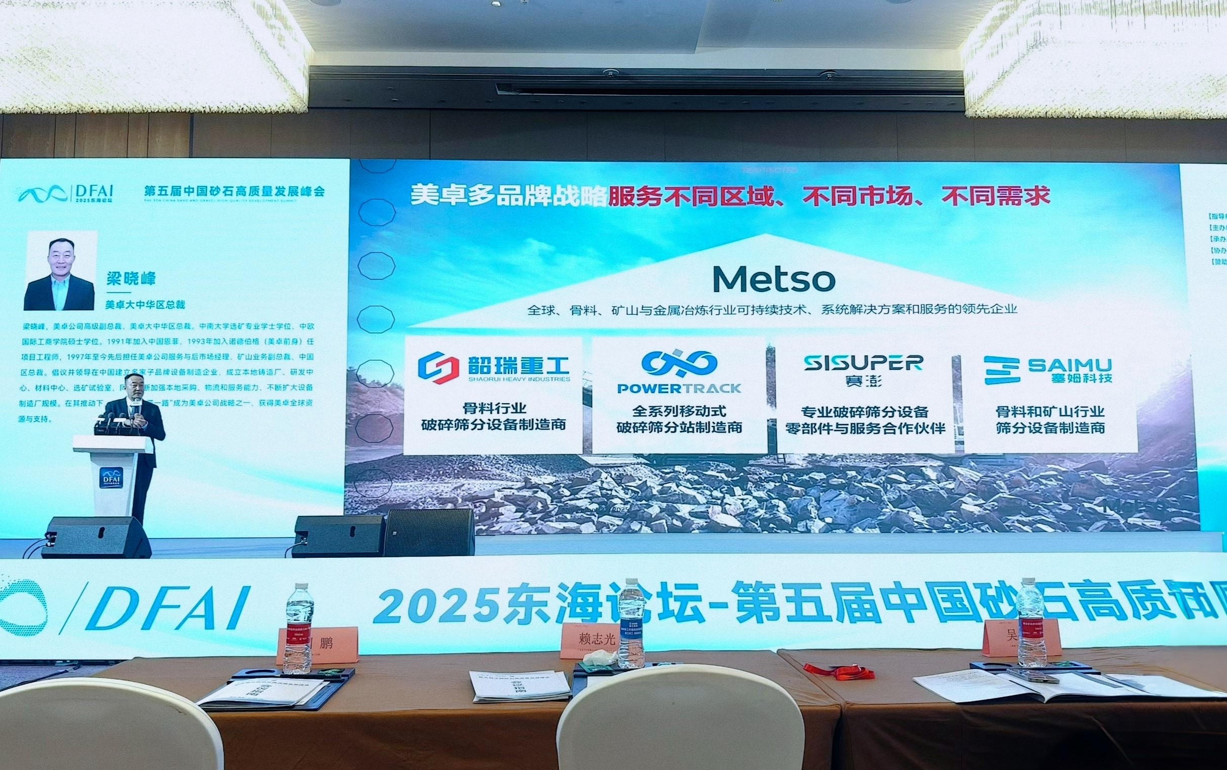 美卓大中华区总裁梁晓峰先生出席大会并发表主题演讲。他指出,在砂石骨料装备领域,美卓打造适配超级石矿、中小型矿山等不同应用场景的设备,制定差异化的品牌落地策略,并在中国不断加大投资、深化本地化发展,已形成覆盖骨料生产全流程、满足多元化市场需求的多品牌业务布局。